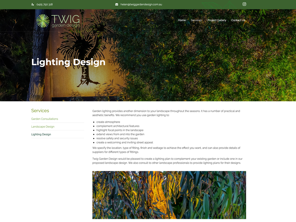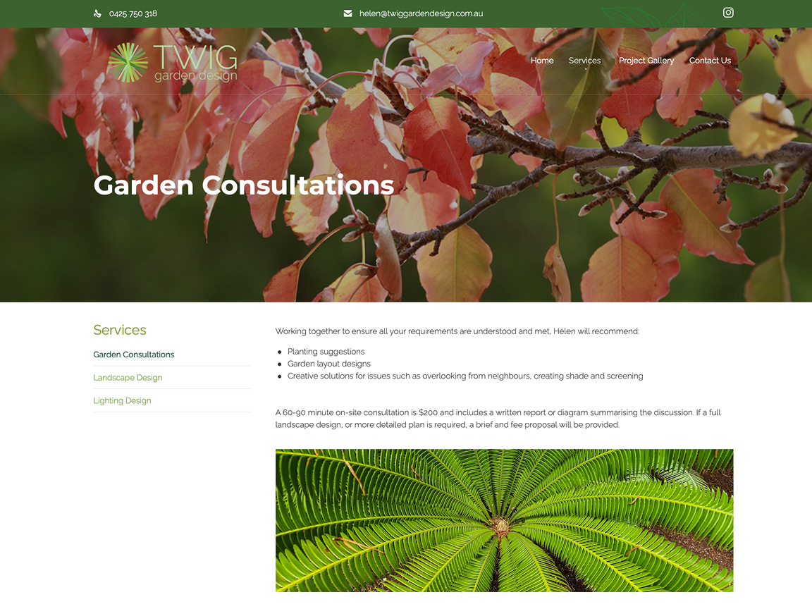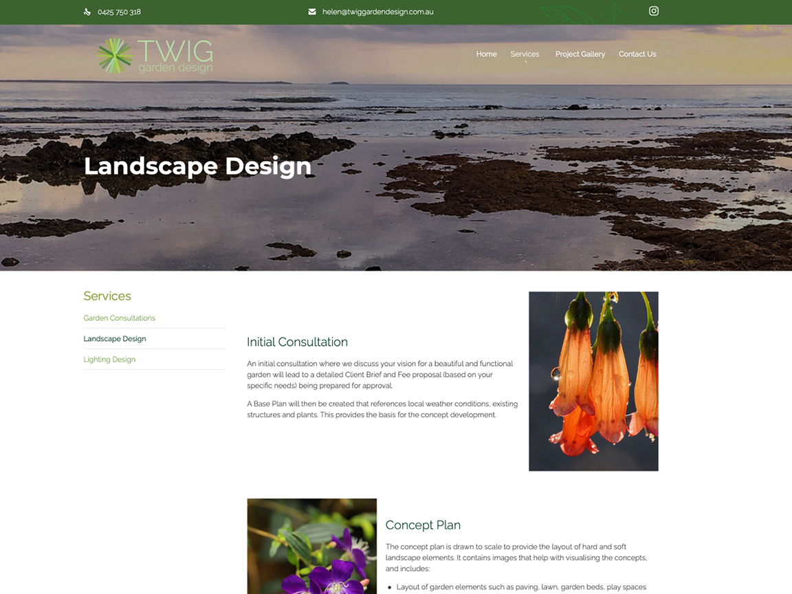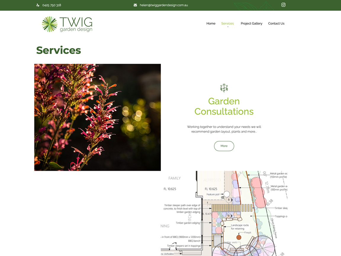 Create a brand identity for Twig Garden Designs, that included the development of a new website and business cards.